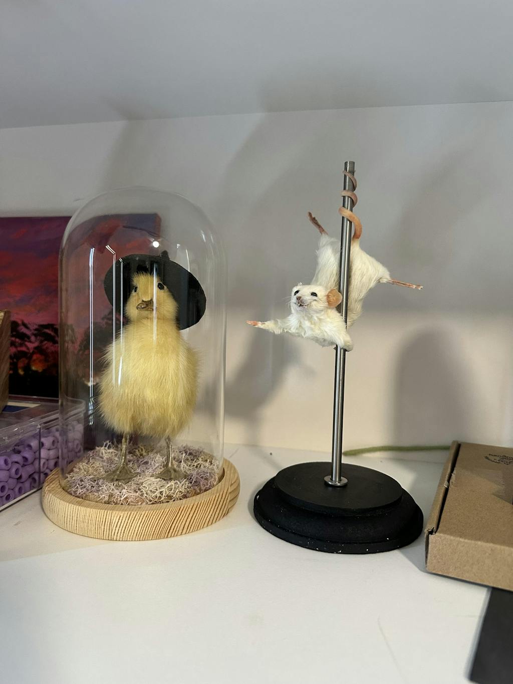 Taxidermy Stripper Mouse on her pole. Part of the ‘Squeakers’ collection.